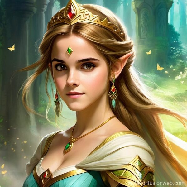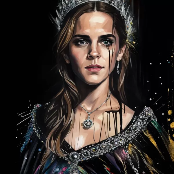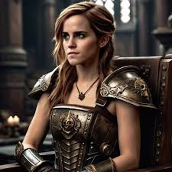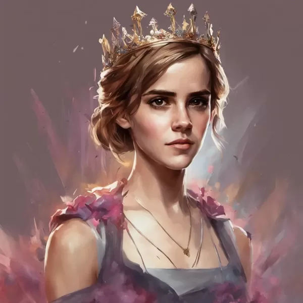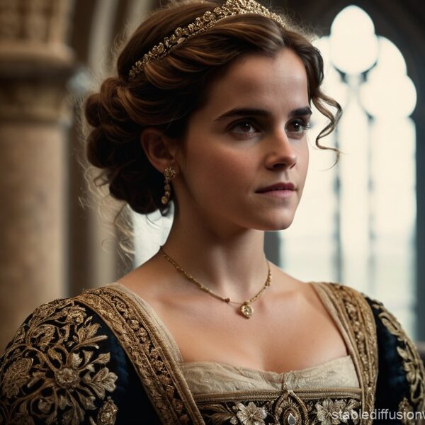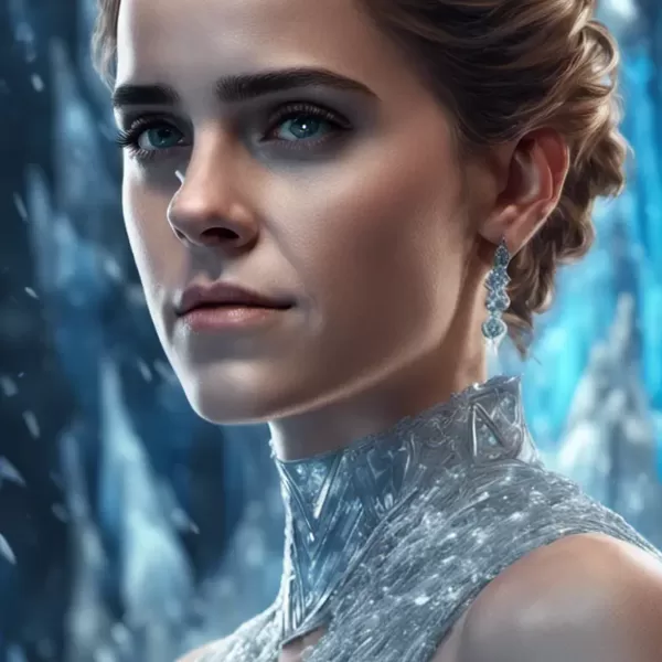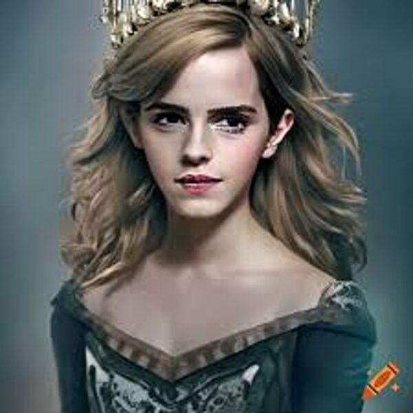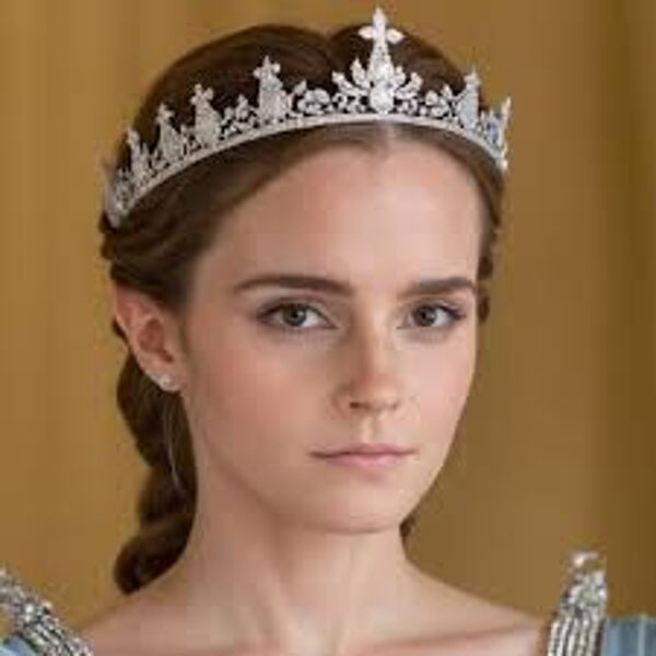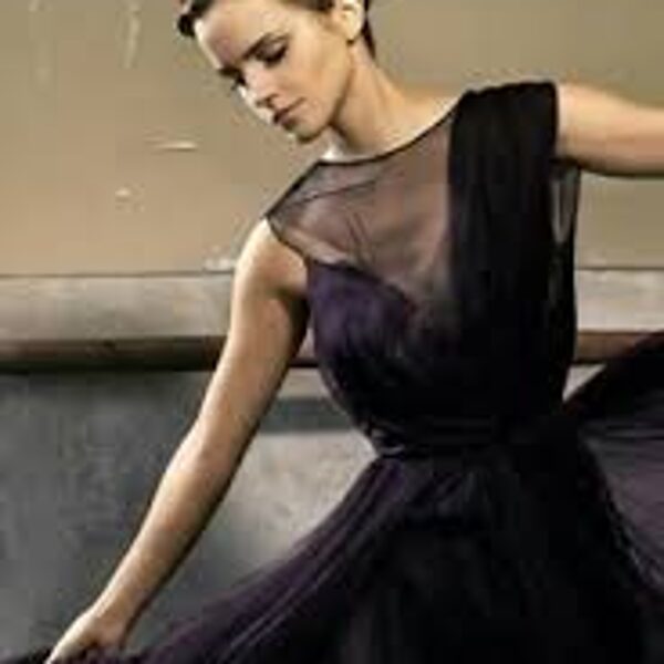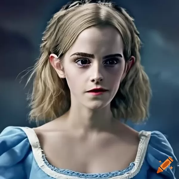 Adding feminine curls to her shoulder-length locks, Emma finishes with a thick black headband.