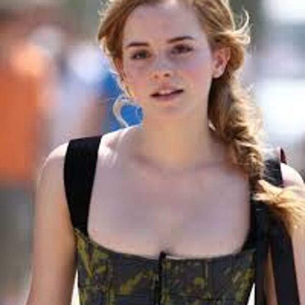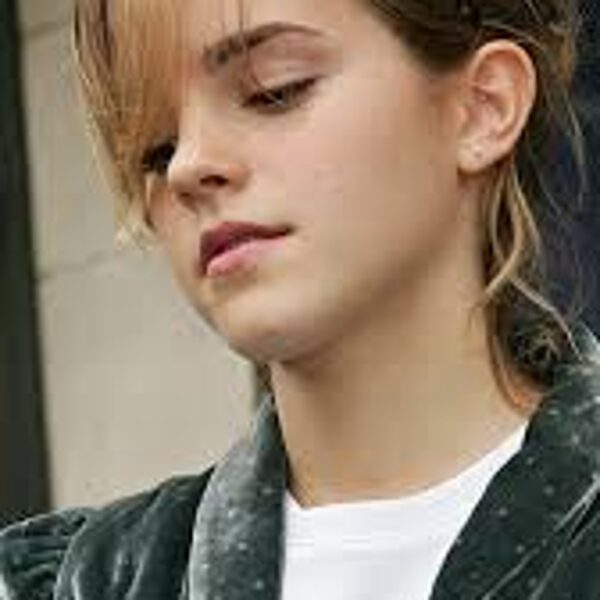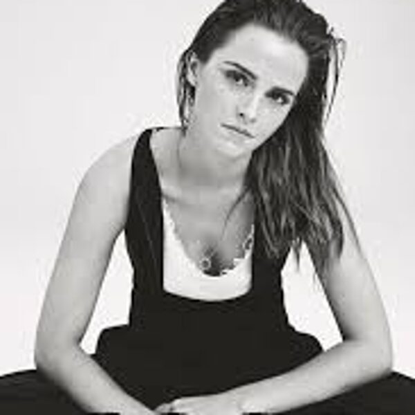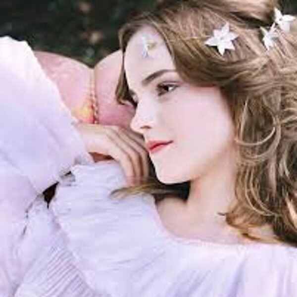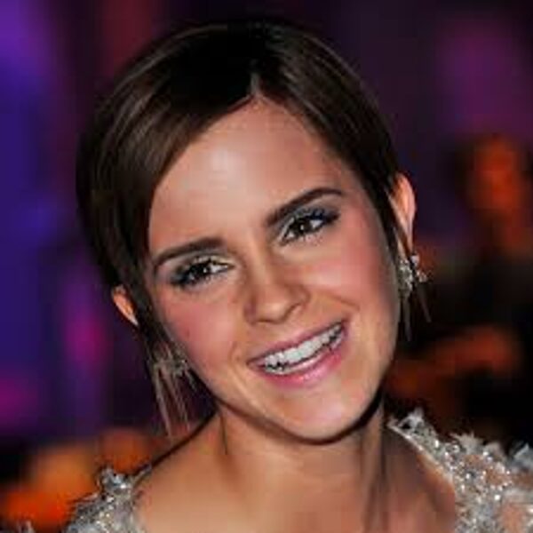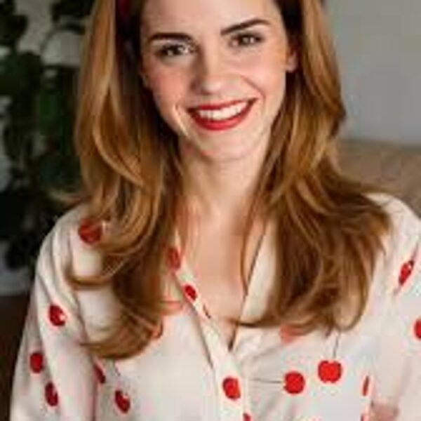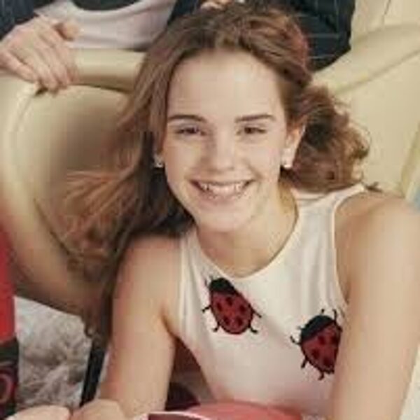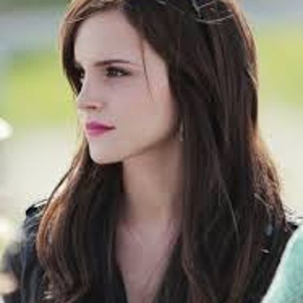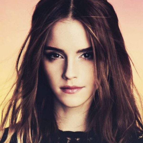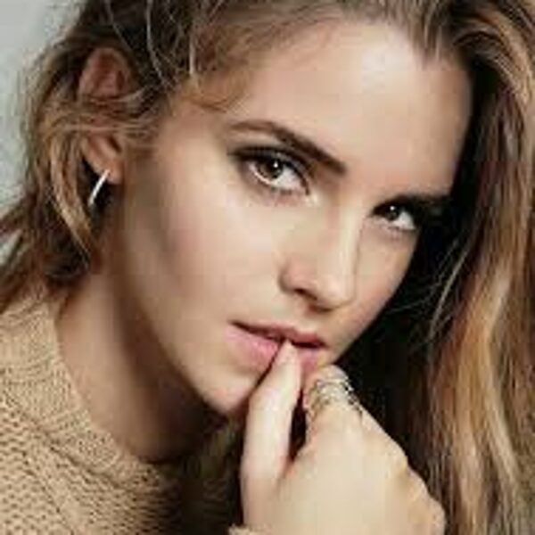 Letting a lock of her side-fringe escape, Emma is a natural beauty with lightly-bronzed skin, and ultra-long lashes.