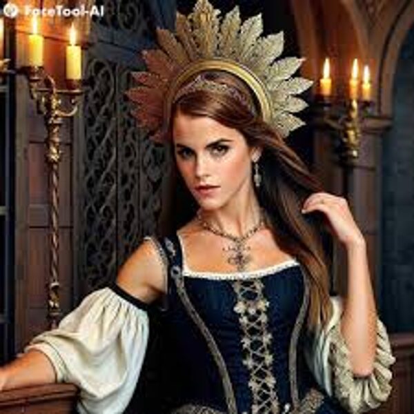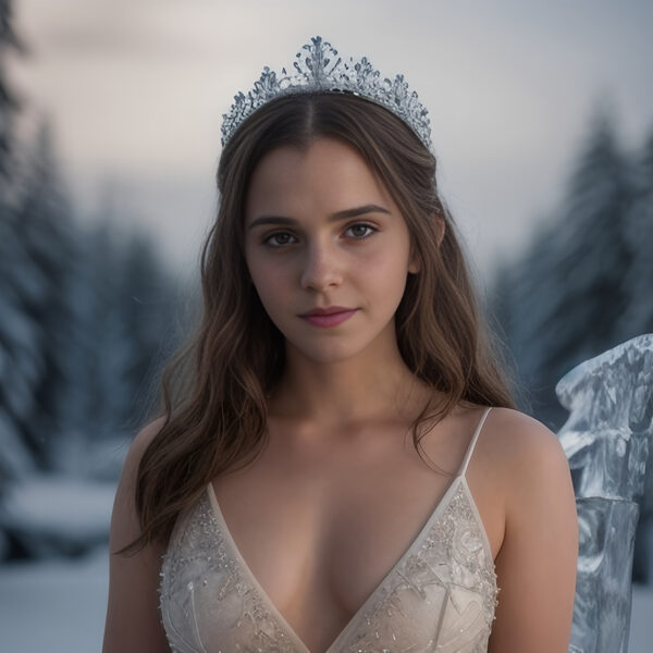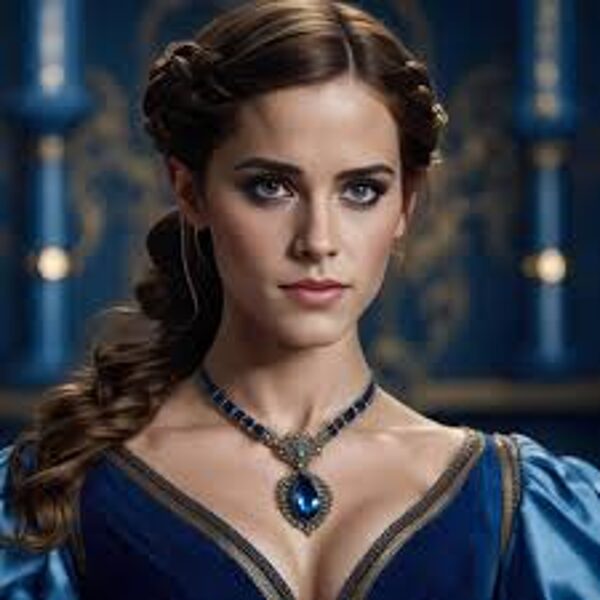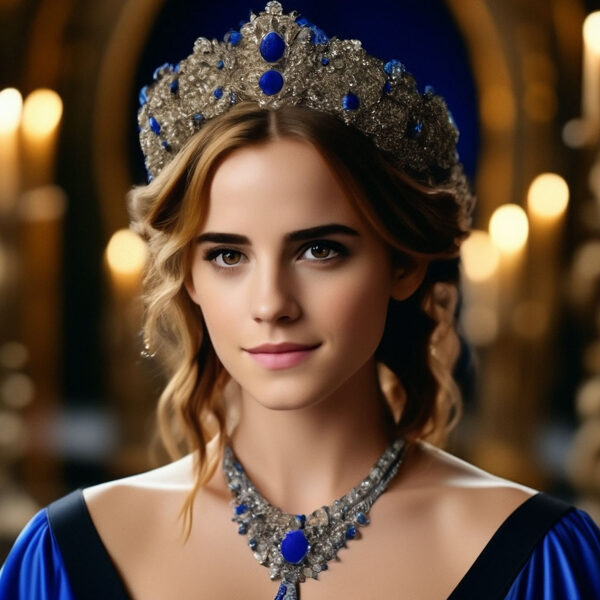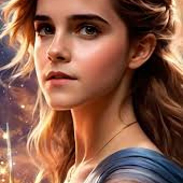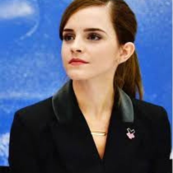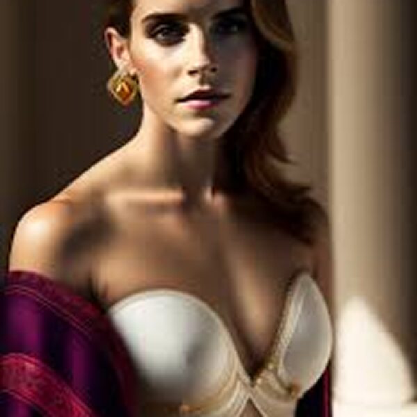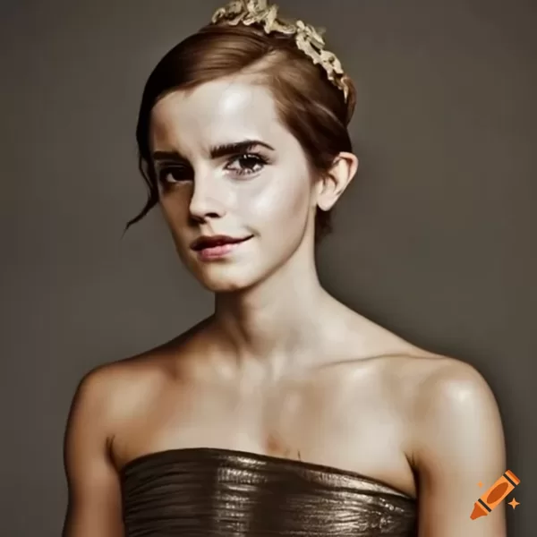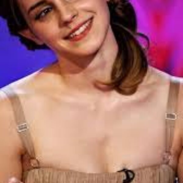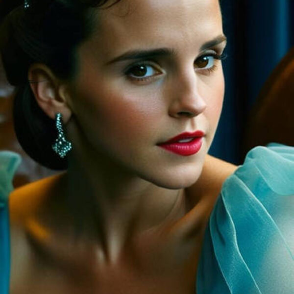 Letting a lock of her side-fringe escape, Emma is a natural beauty with lightly-bronzed skin, and ultra-long lashes.