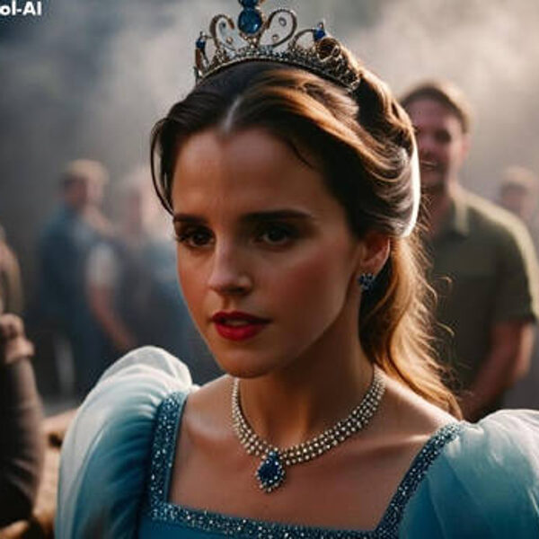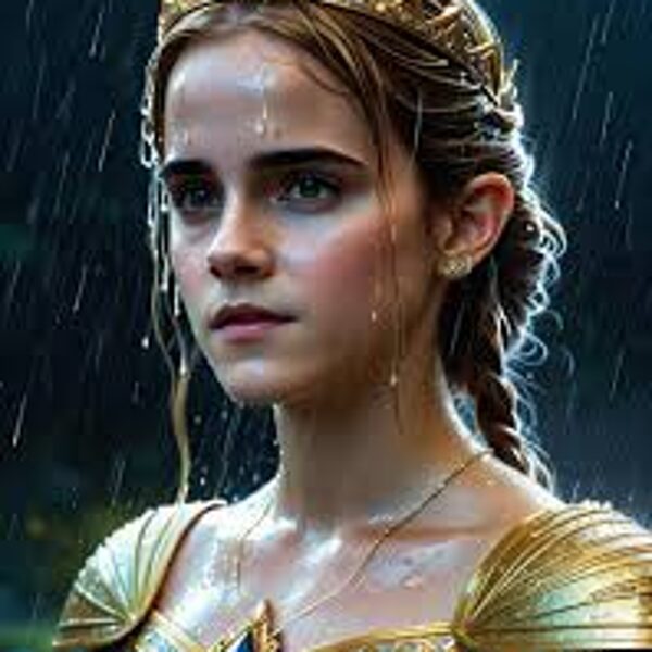 Make-up free and swept-back hair: Emma’s beauty credentials are already becoming clear.