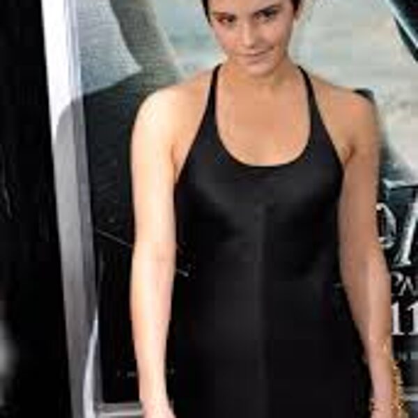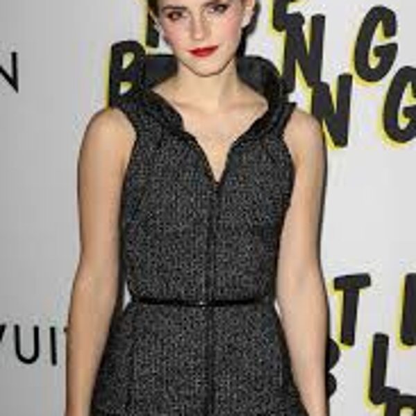 Those bold, heavy brows are becoming a signature for Emma already: she shows them off with a natural make-up look, keeping her golden-brown locks in check with a heavy black hairband.