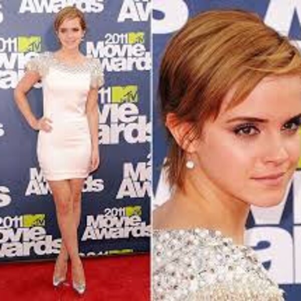 Going for a lighter, golden hair hue at the MTV awards, Emma looks stunning with a side-swept hairstyle and glowing skin.