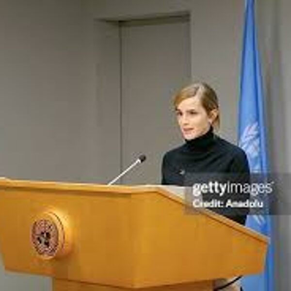 Ten-year-old Emma appears at a press conference where she’s announced as the actress chosen to play Hermione.